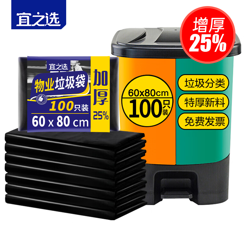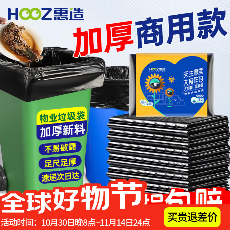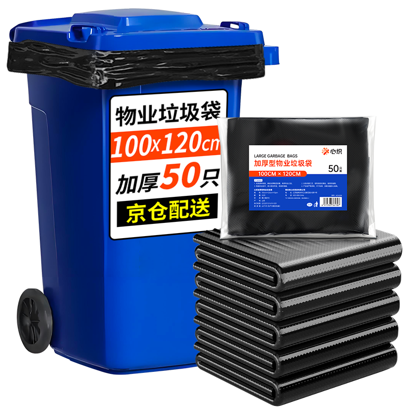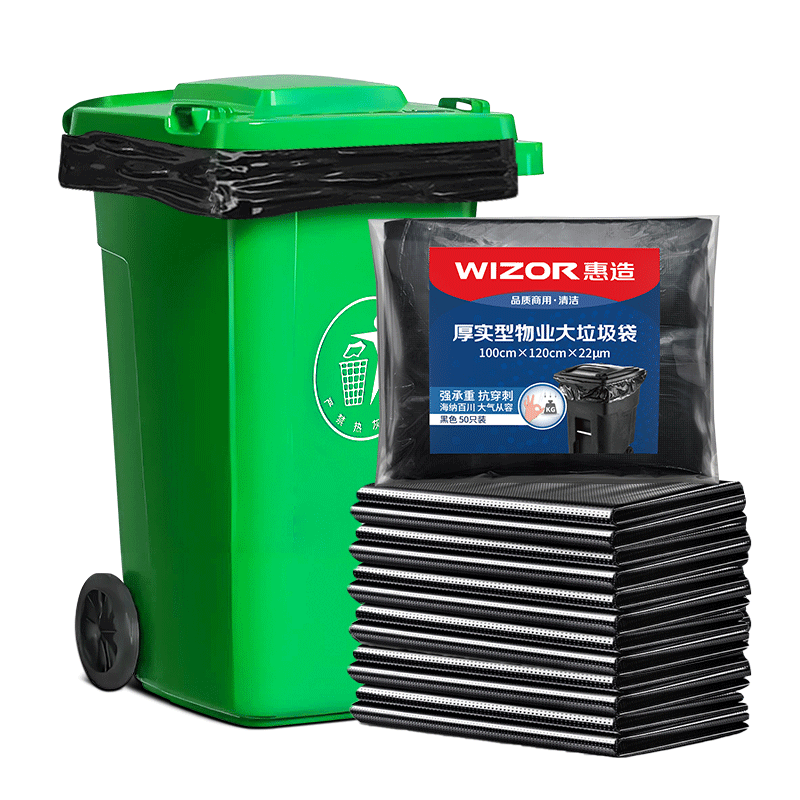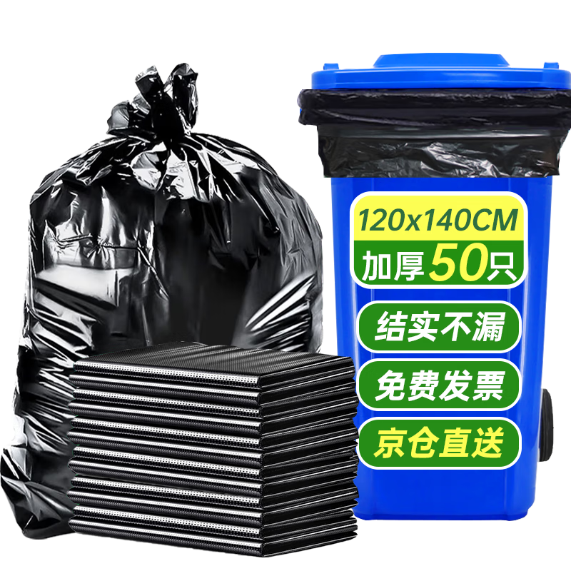 隨新特大號(hào)超大號(hào)加厚黑色商業(yè)物業(yè)垃圾袋E款60*80CM50只平口垃圾分類