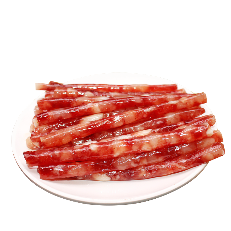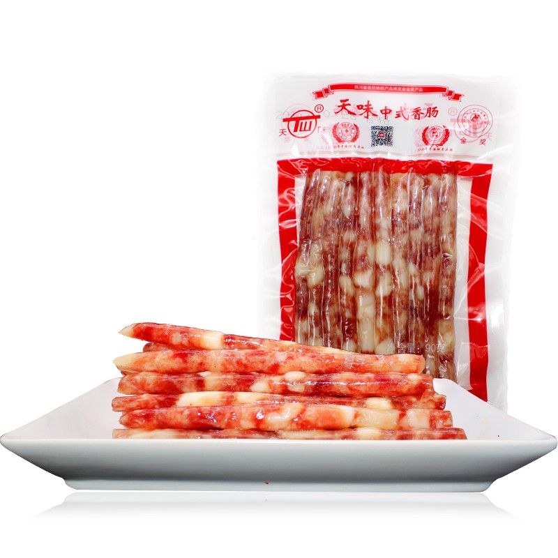 臘腸是一種臘味食品,是中國(guó)江浙、四川及廣東等南方地區(qū)常見(jiàn)的食物。傳統(tǒng)的臘腸是以豬肉注入利用動(dòng)物腸臟制作的腸衣,再天然風(fēng)干制成,但現(xiàn)在工廠生產(chǎn)的臘腸,腸衣多以人工方法制造,并以熱風(fēng)干燥來(lái)提高生產(chǎn)效率。臘腸不但可單獨(dú)食用,也是制作多種粵式食品的食材。用途臘腸與其他臘味相比,因?yàn)榕D腸的豬肉餡料有腸衣包覆,豬肉的油脂不易流出。在廣東和香港,臘腸是制作臘味飯的重要材料,原條臘腸被放在米飯上煮熟。煮熟后的臘腸油份飽滿,當(dāng)切開(kāi)或咬開(kāi)后,充滿臘味氣味的油脂便流出來(lái),使米飯都帶有臘味的味道。臘腸卷是以完條臘腸制作的包子。臘腸可切片與其他食材一起作為小菜,臘腸也是制作多種粵式食品的材料,包括生炒糯米飯、糯米雞和蘿卜糕等。注:本名詞內(nèi)容引自維基百科