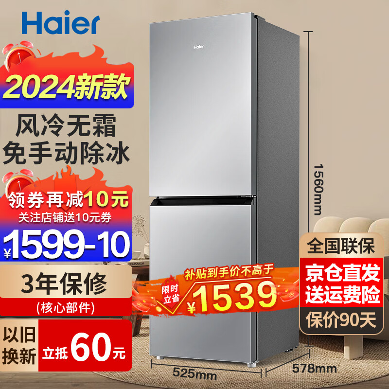 618購(gòu)后曬!海爾(Haier)170升兩門(mén)二門(mén)雙門(mén)節(jié)能低噪風(fēng)冷無(wú)霜小型家用電冰箱