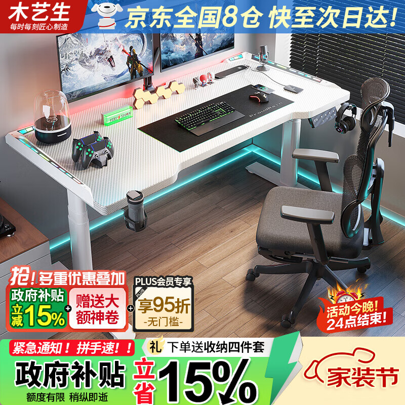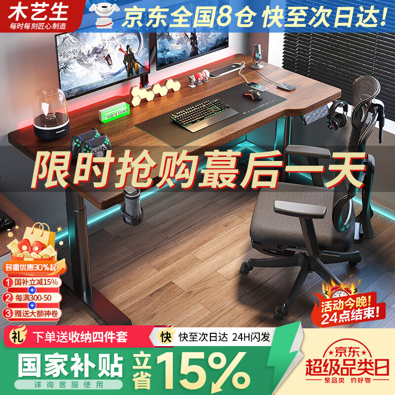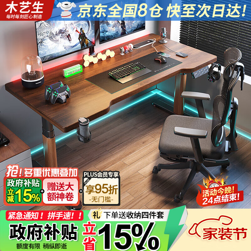 實(shí)木電動(dòng)升降桌,雙電機(jī)站立式電腦桌,簡(jiǎn)約家用神器!