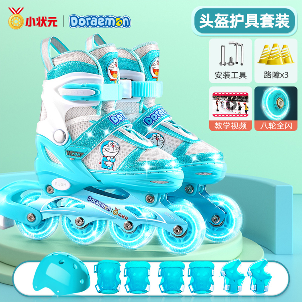 361°兒童輪滑鞋男童女童初學者溜冰鞋直排輪旱冰鞋八輪全閃 藍色