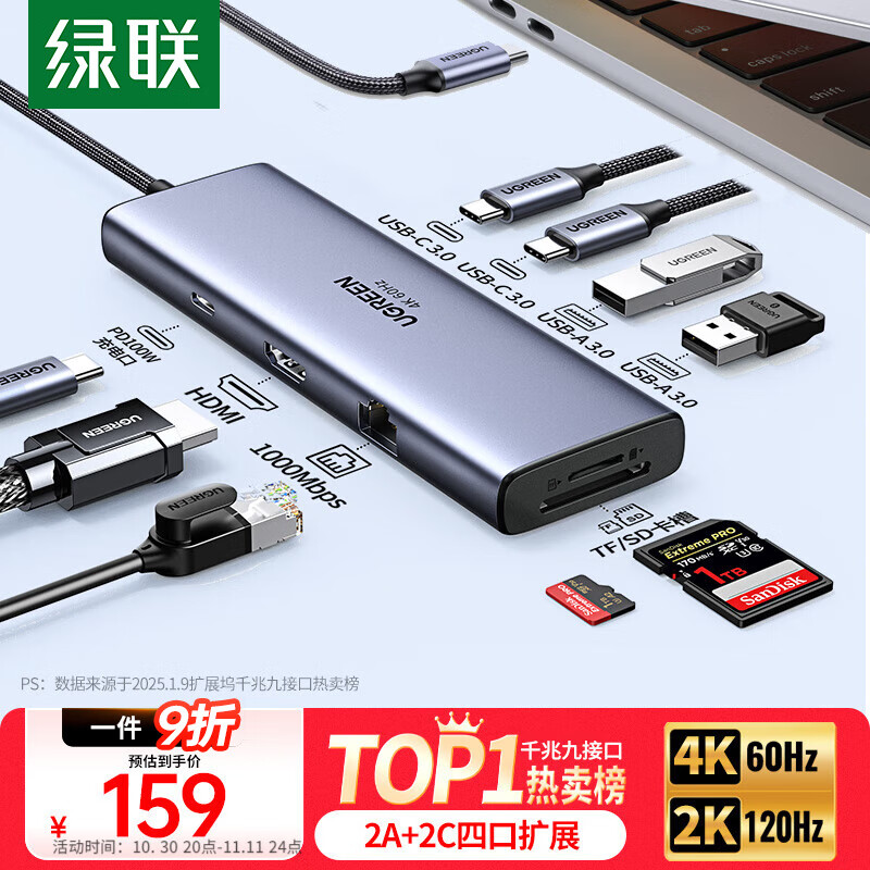 MacBook和Matebook的必備配件,綠聯(lián)一拖九Type-C轉(zhuǎn)接頭擴(kuò)展塢