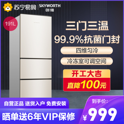 僅要640塊RMB還可6期免息, 191L創(chuàng)維三門冰箱D19B真值