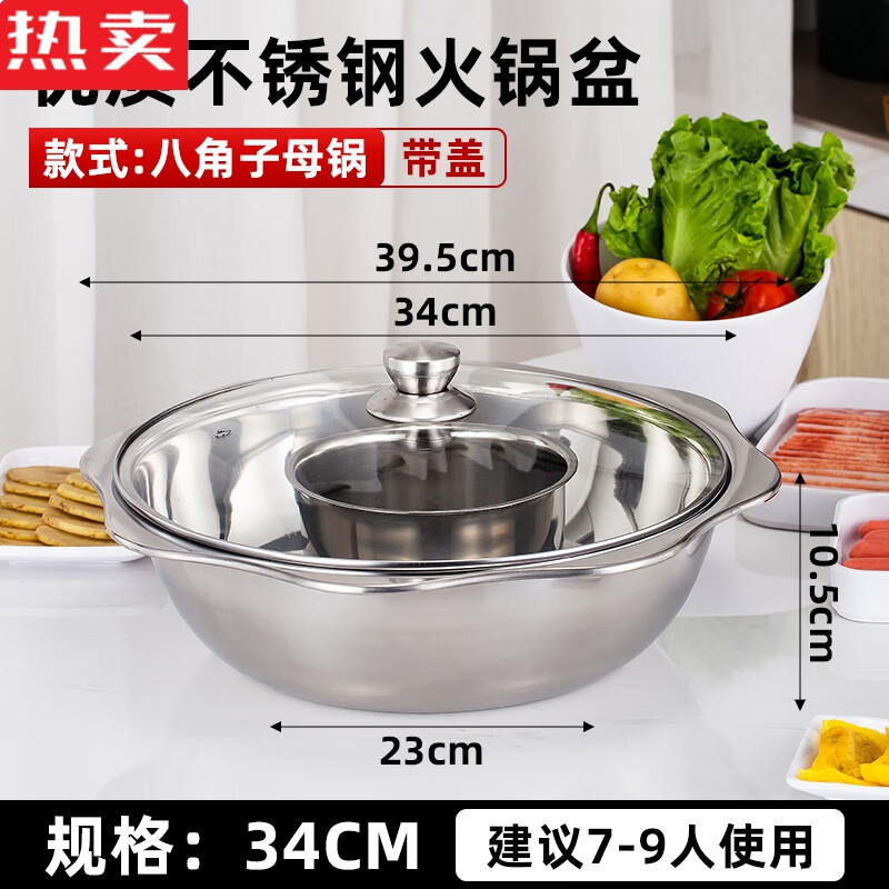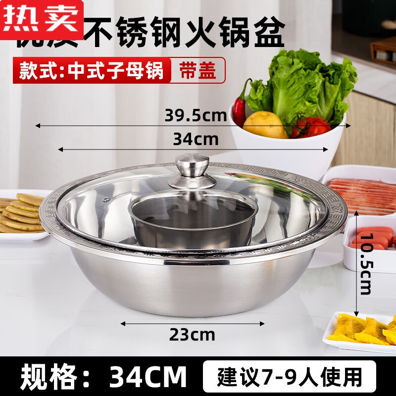 美廚(maxcook)304不銹鋼火鍋26cm 湯鍋電磁爐火鍋復(fù)底帶蓋