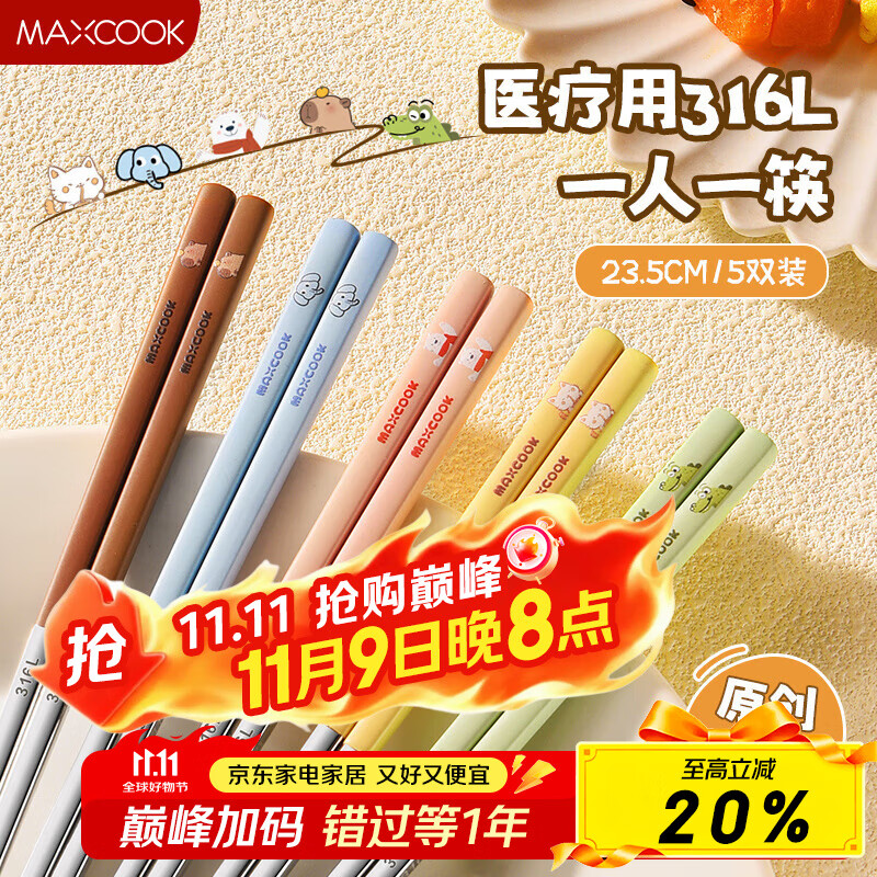 幾物森林 筷子家用合金筷子 防霉防滑耐高溫 創(chuàng)意日式尖頭筷子餐具套裝 家庭裝人物分筷5雙裝