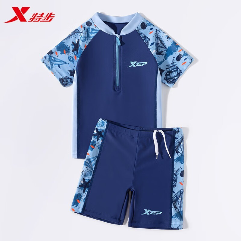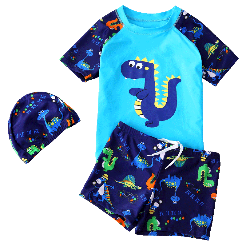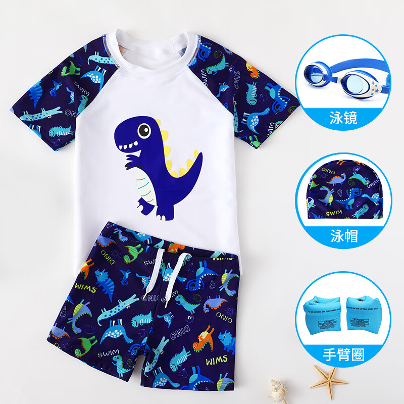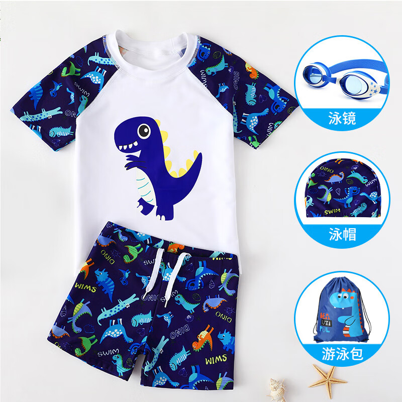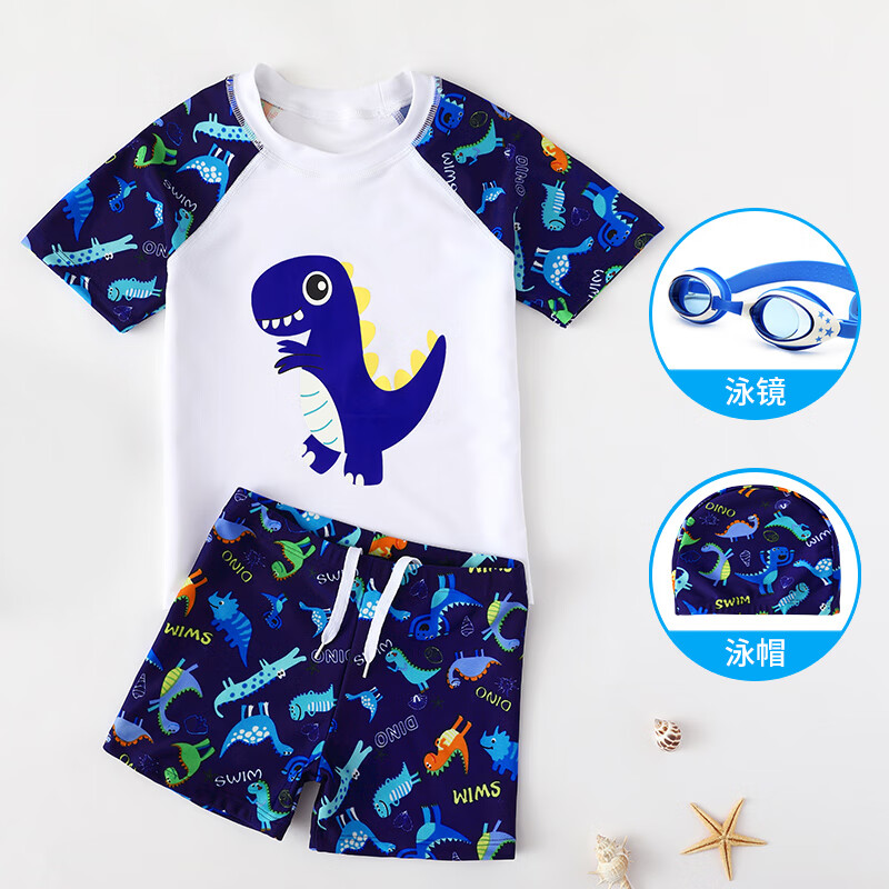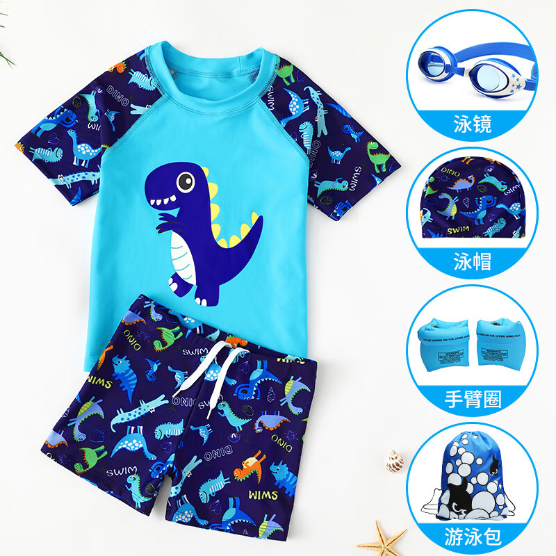 羽克(Yuke)兒童泳衣男童分體游泳衣小中大童寶寶嬰兒防曬泳褲套裝游泳裝備 藍色恐龍