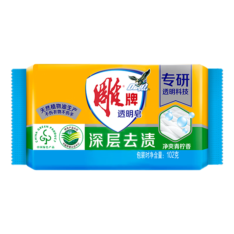 雕牌透明皂凈爽青檸香102g*6塊:深層去漬+易漂無殘留