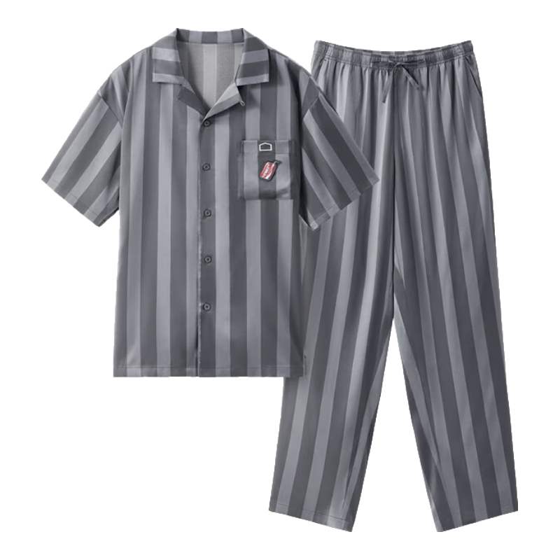 浪莎男士睡衣男秋冬款長袖長褲套裝棉質(zhì)圓領(lǐng)套頭簡約家居服寬松純色可外穿 條紋深藍(lán) 185/XXXL京東自營店浪
