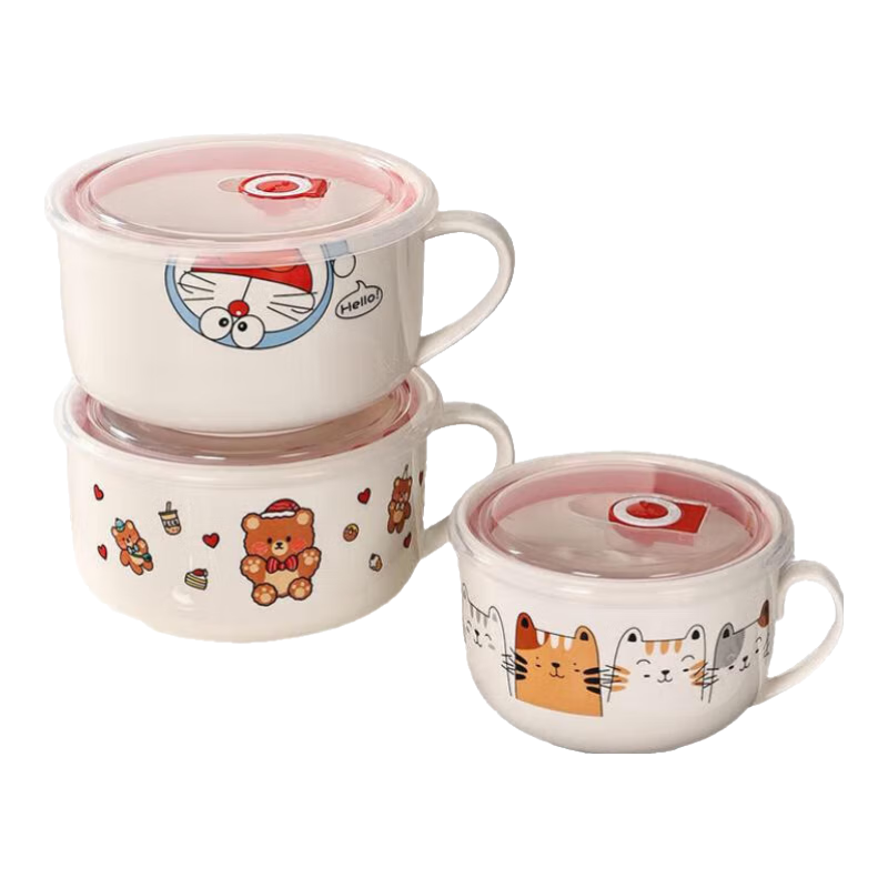 卡通陶瓷泡面保鮮碗:6寸萌趣設(shè)計(jì),學(xué)生黨與上班族的便捷之選