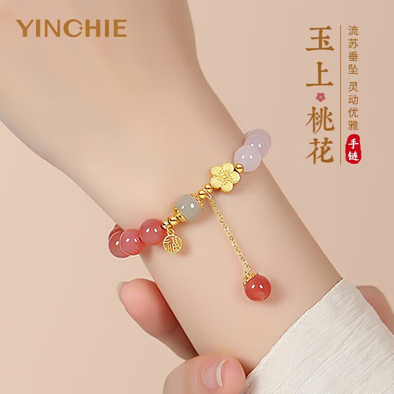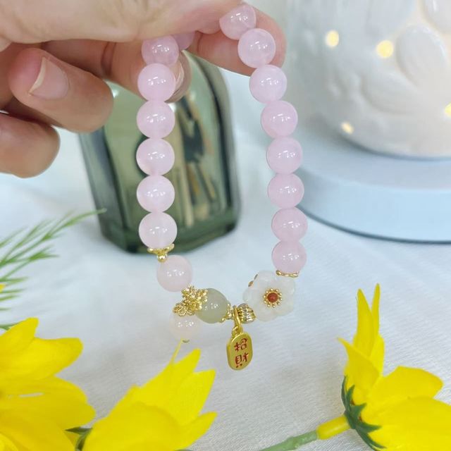 鳳凰涅磐草莓晶手鏈女生粉水晶手串粉晶珠子桃花花朵水晶瑪瑙串珠時(shí)尚飾品送女友老婆閨蜜生日圣誕節(jié)禮物