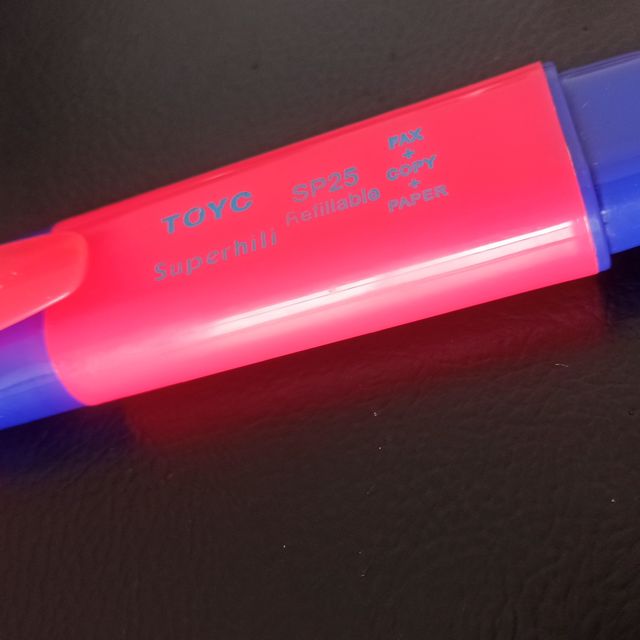 熒光筆是記號筆中其中的一種,由于能呈現(xiàn)醒目的顏色但又不影響內(nèi)容的閱讀,因此不少人都喜歡使用熒光筆標(biāo)示文件或課本上的重點。熒光筆的墨水為半透明顏色,經(jīng)過影印復(fù)制之后無法看見。注:本名詞內(nèi)容引自于維基百科