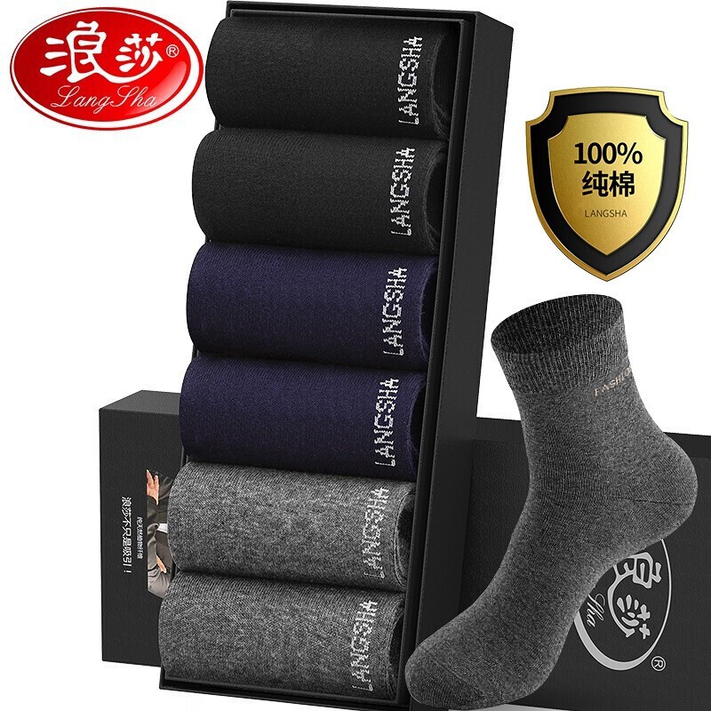 ?浪莎襪子男純棉抑菌防臭運(yùn)動(dòng)襪男士襪子全棉吸汗舒適中筒男襪6雙冬季 黑2深灰2淺灰2 均碼沖沖沖沖呀京東