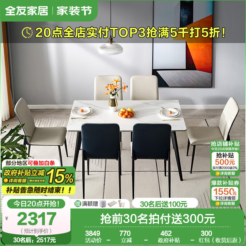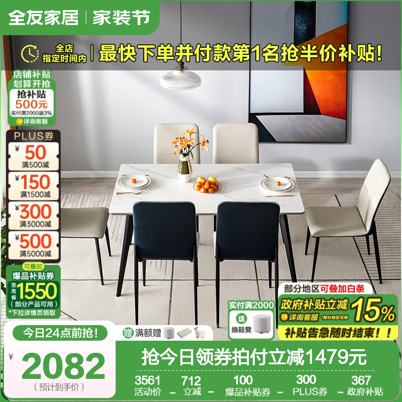 全友家居618好物搶先看,種草巖板餐桌
