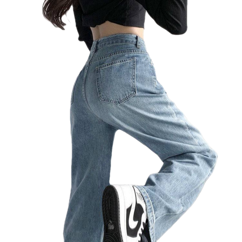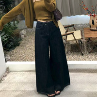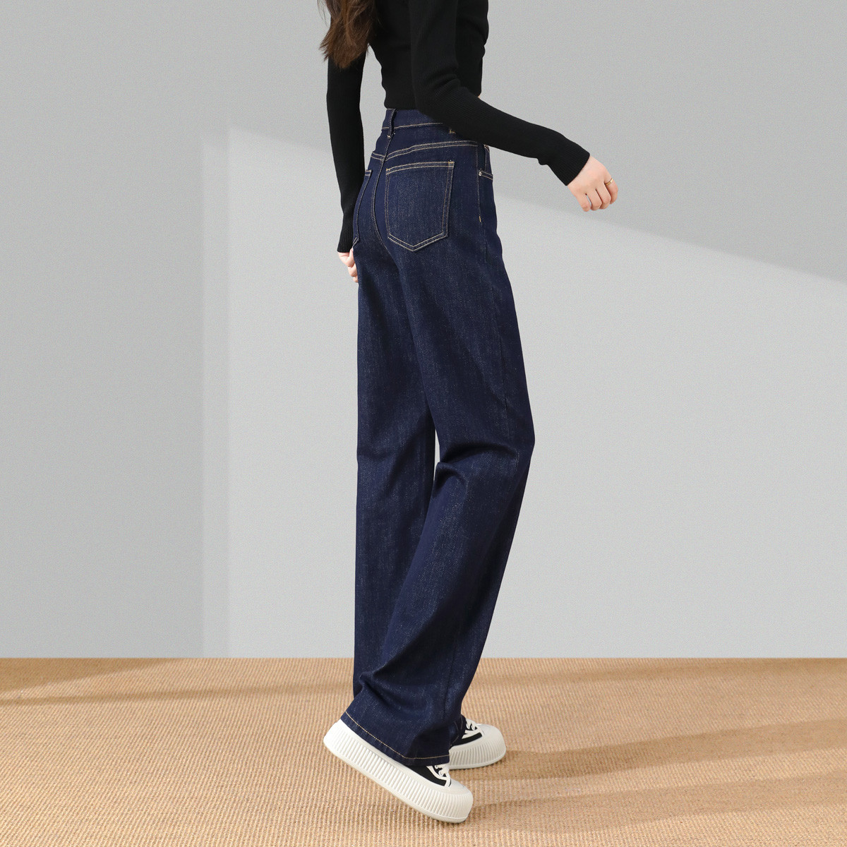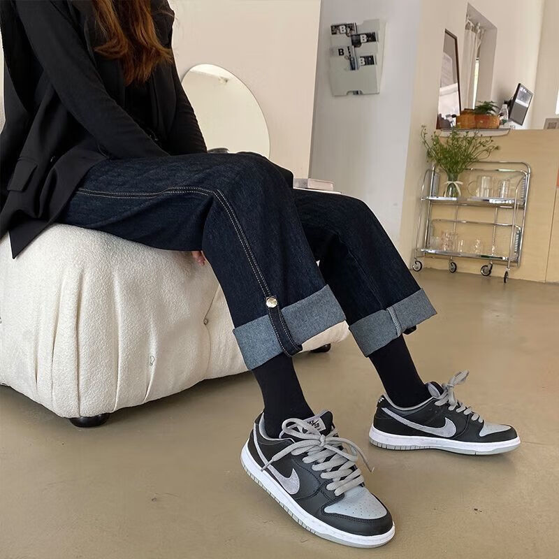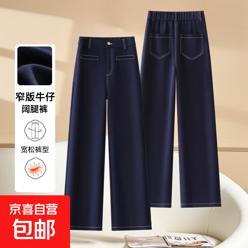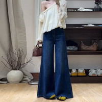 復(fù)古深藍(lán)色闊腿牛仔褲:春秋時(shí)尚的顯瘦利器