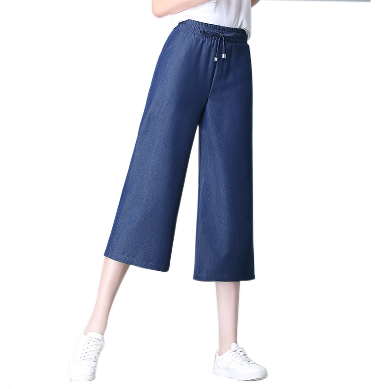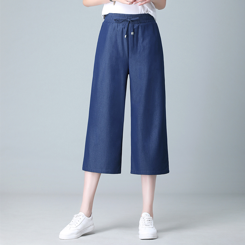 春日時(shí)尚新寵:艾賽萊爾淺藍(lán)深藍(lán)色闊腿牛仔褲