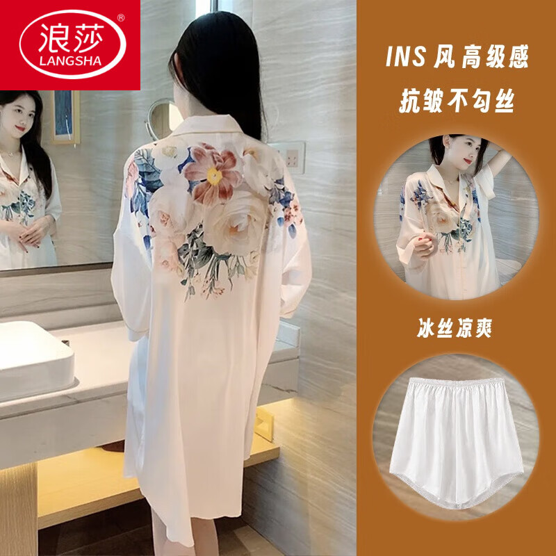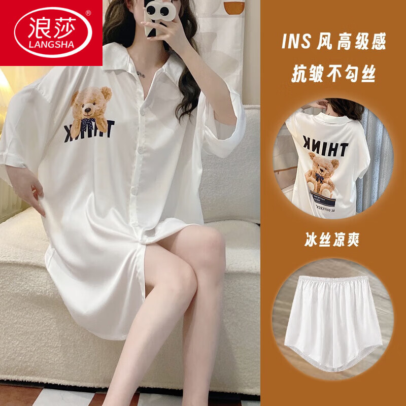 鹿叔:性感睡衣春夏男友風(fēng)襯衫誘惑冰絲大碼純欲薄款秋季睡裙女款