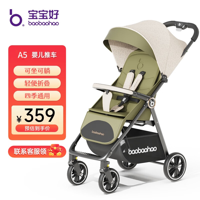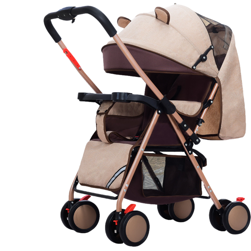 豪威 嬰兒推車可坐可躺雙向超輕便折疊傘車寶寶0-3歲手推車小孩兒童車 麻卡其+至尊款+一鍵折疊+全功能