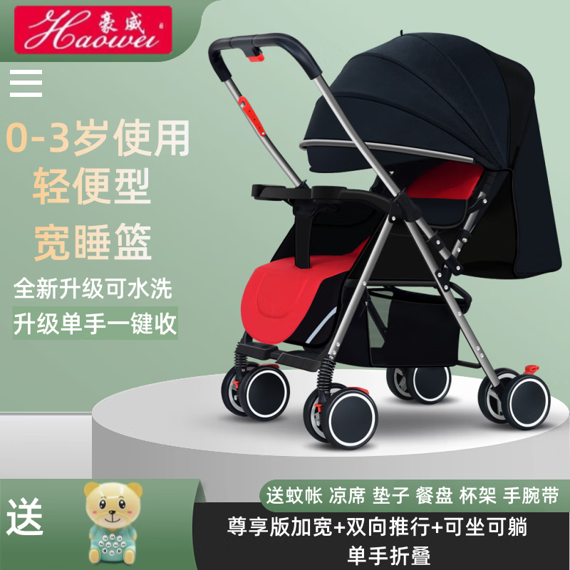 豪威 嬰兒推車可坐可躺雙向超輕便折疊傘車寶寶0-3歲手推車小孩兒童車 薄荷綠 旗艦款+可坐可躺可折疊