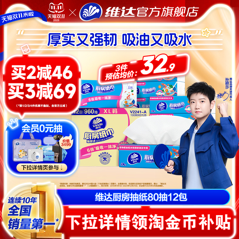 維達(dá)細(xì)韌軟抽紙巾廚房多用