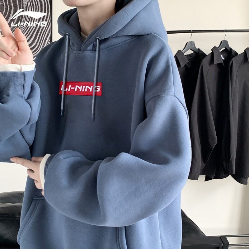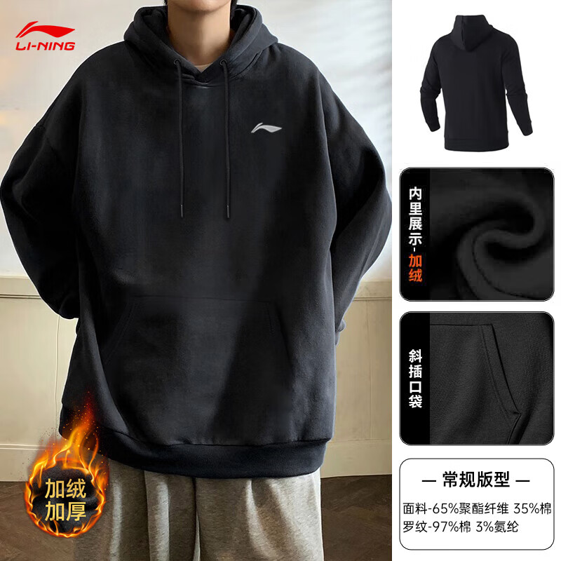 回力連帽衛(wèi)衣男印花加絨保暖打底衫長袖t恤男冬季上衣