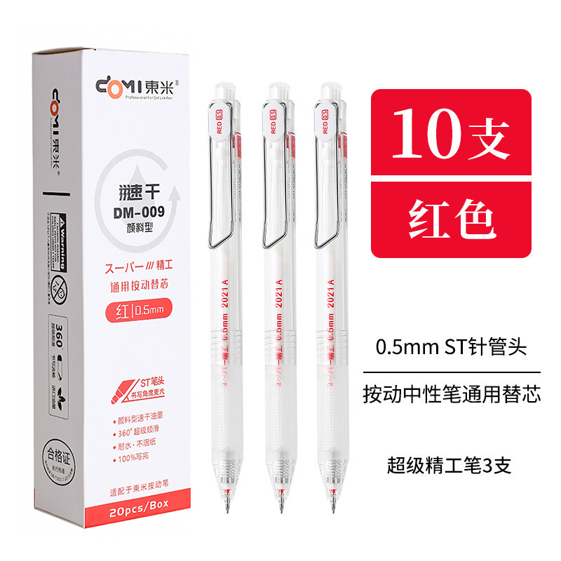 最常見(jiàn)的中性筆芯筆頭直徑有0.5mm,最常見(jiàn)的中性筆筆芯筆頭樣式是子彈頭。