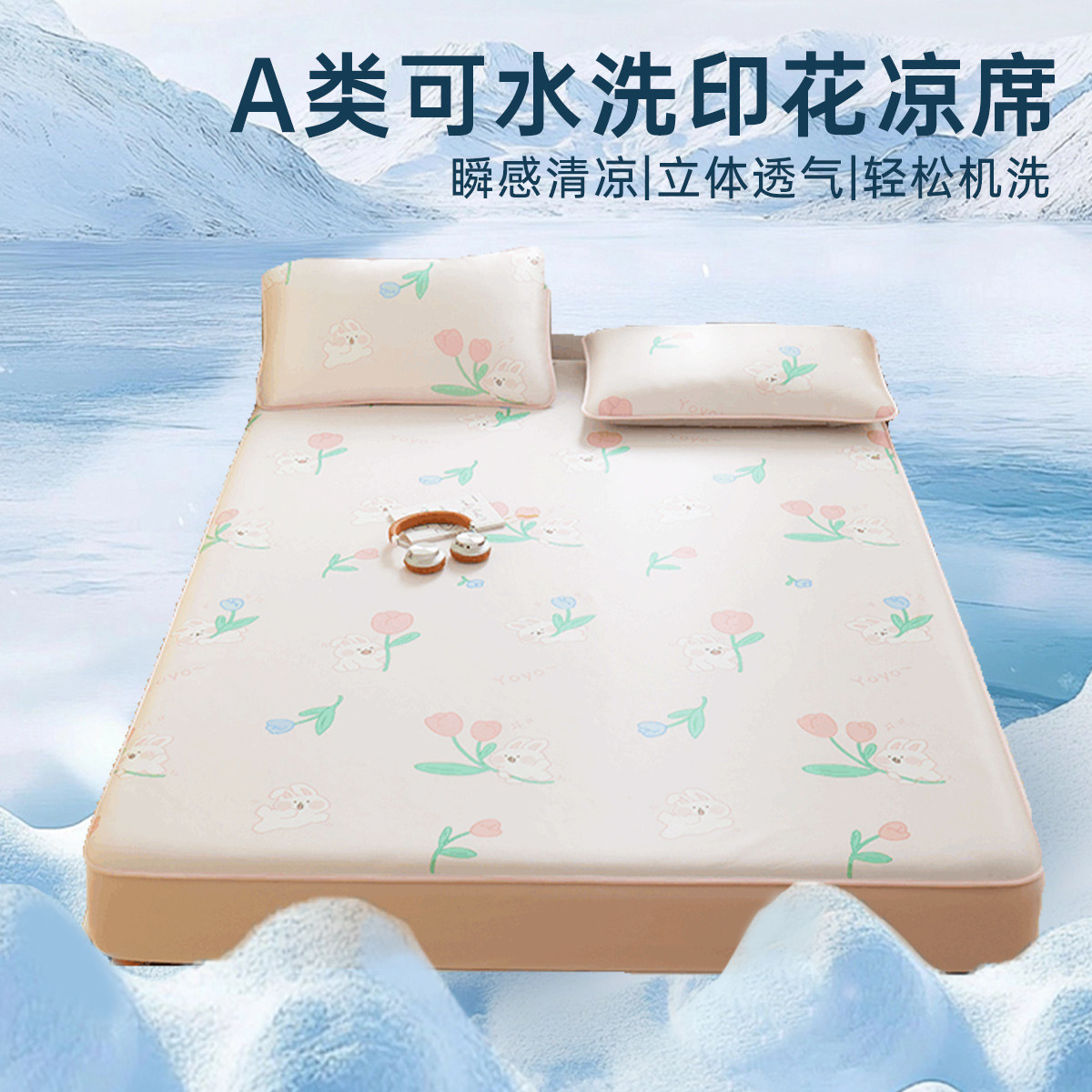 夏季乳膠涼席三件套冰絲席可水洗兒童單人學生宿舍夏天空調(diào)軟席子