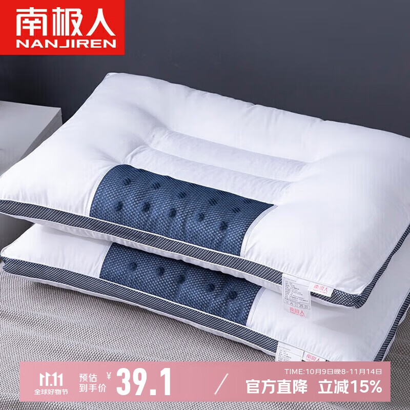 富安娜京爆 枕頭芯頸椎枕芯決明子枕頭深度睡眠枕一對裝74*48cm