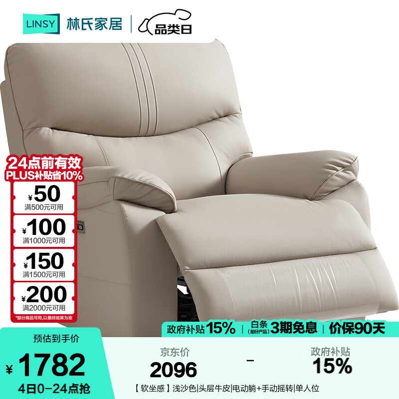 芝華仕頭等艙真皮沙發(fā)單人簡約電動(dòng)功能單椅懶人躺椅芝華士K135白