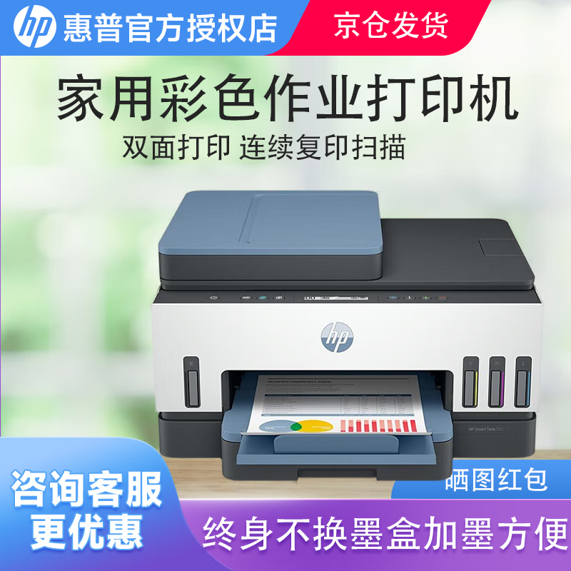 惠普(HP)598 家用學(xué)習(xí)連供無(wú)線打印一體機(jī) 大容量可加墨多功能