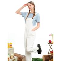 破洞背帶牛仔短褲女裝夏季薄款高腰直筒寬松顯瘦闊腿吊帶連體褲子