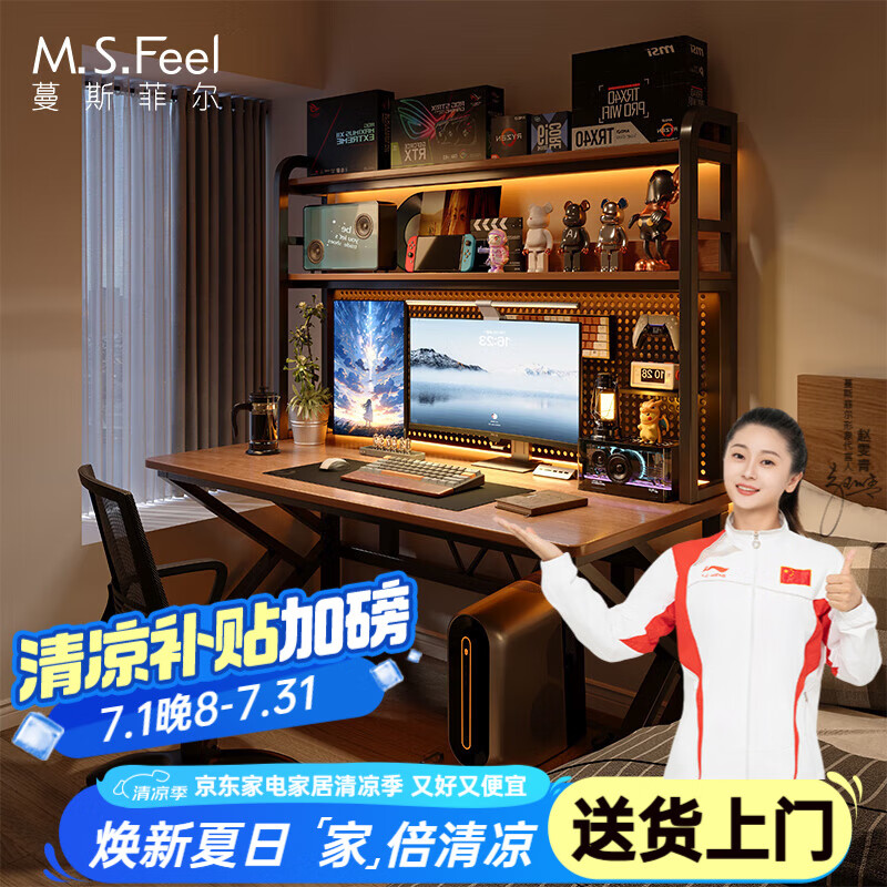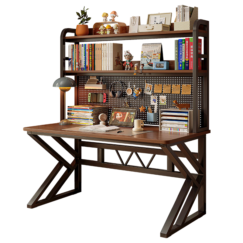 木以成居電腦桌臺式鋼木書桌書架收納現(xiàn)代簡約學(xué)習桌子 淺胡桃色