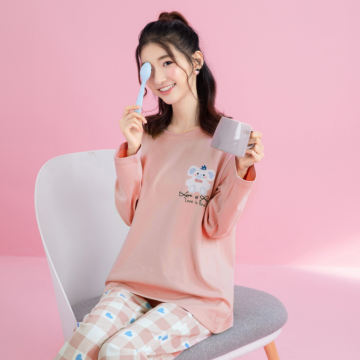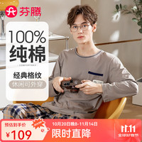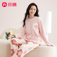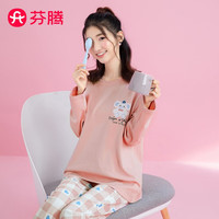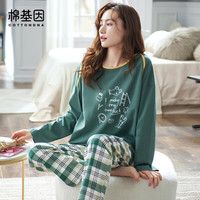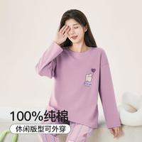 ?貓人睡衣女春秋季純棉圓領套裝休閑寬松女士家居服2021年新款可外穿 可愛小熊 L【建議95-110斤】沖沖沖沖