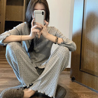?浪莎睡衣女秋冬長袖長褲棉質寬松純色圓領女士家居服可外穿休閑睡衣睡褲套裝 杏色 170/XL沖沖沖沖呀值得?