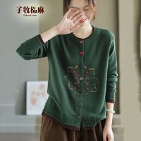 奉孝奶奶裝針織衫媽媽冬裝外套中老年人春秋毛衣女保暖衣開衫加絨加厚 8032紅咖-2 3XL(建議135-150斤)