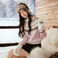 加絨加厚連帽新年紅色衛(wèi)衣秋冬裝新款兔子圓領(lǐng)毛衣女寬松針織衫