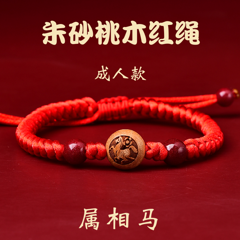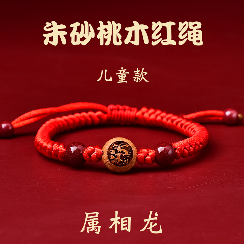 原礦朱砂手串男屬龍年護身符十二生肖佛珠手鏈女六字箴言菩薩文殊