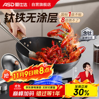 三禾微納無涂層不粘炒鍋不銹鋼炒菜鍋無油煙含鈦鍋具32cm霧月白配鋼鏟
