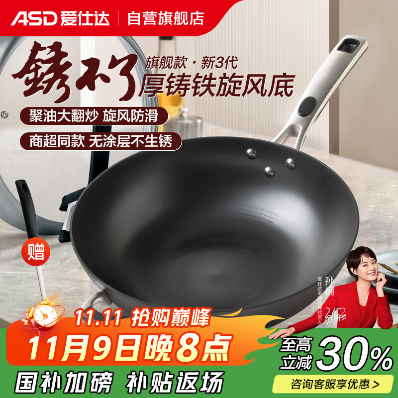 蘇泊爾 SUPOR 鑄鐵真不銹健康無涂層鐵鍋32cm炒菜鍋EC32LF01