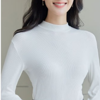 ?蘭縵尼 秋冬季半高領打底衫女士長袖無尺碼時尚百搭顯瘦木耳邊內搭上衣女 白色 均碼(建議80-140斤)沖沖
