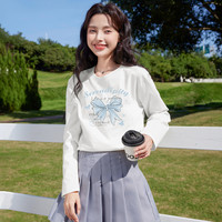 白色長袖t恤女2023春夏新款寬松衛(wèi)衣疊穿內搭打底衫純棉短袖上衣