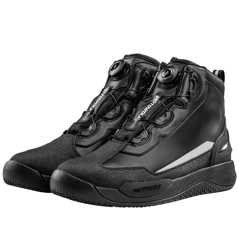 機(jī)車靴即摩托車靴,摩托車靴是摩托車手所穿的靴子,對摩托車駕駛的安全起到重要的作用。摩托車靴的靴筒高度一般是從腳踝開始到膝蓋以下的小腿部分,鞋跟較低。為了提高摩托車駕駛的安全性,摩托車靴一般以厚重的皮革為原材料來制造。同時也會使用一些緩震材料、金屬、塑料以及復(fù)合材料,來保障摩托車手在駕車時足部、踝部以及腿的安全。注:本名詞內(nèi)容引自百度百科