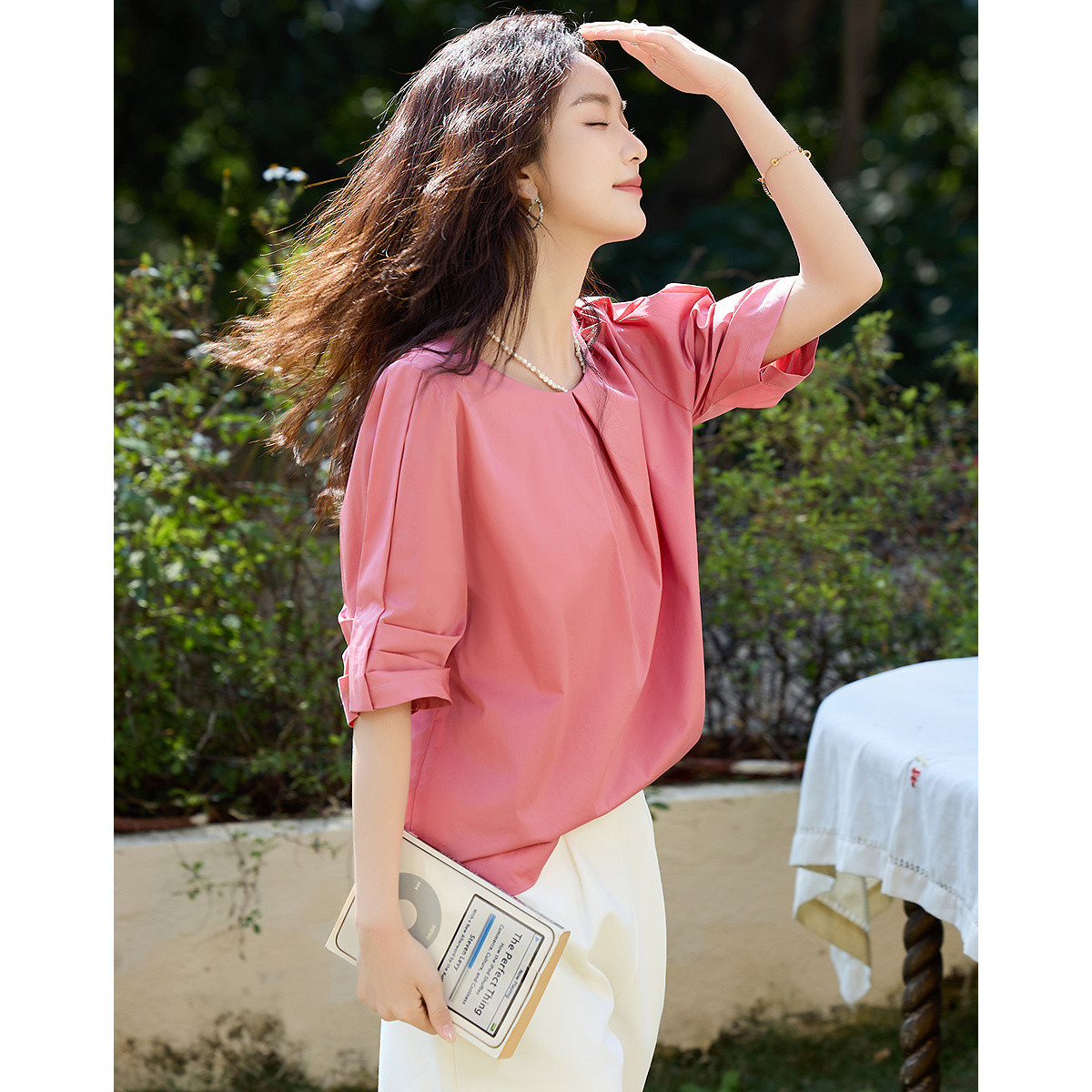 一件慵懶的淺色純棉襯衣
