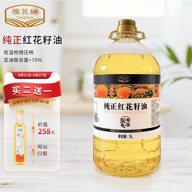 紅花籽油又稱紅花油,是以紅花籽為原料制取的油品。紅花籽油呈黃色,標準型紅花籽油的脂肪酸組成為棕櫚酸5~9%,硬脂酸1~4.9%,油酸11~15%,亞油酸69~79%,碘價140左右,屬干性油。油酸型紅花籽油以油酸為主,約占60%,亞油酸25%,碘價105左右,屬半干性油。油中含維生素E、谷維素、甾醇等營養(yǎng)成分,可與其他食用油調(diào)和成“健康油”、“營養(yǎng)油”,還是制造亞油酸丸等保健藥物的上等原料。工業(yè)上主要用作油漆原料,在奶牛飼料中添加,可提高牛奶的亞油酸含量。注:本名詞內(nèi)容引自百度百科。