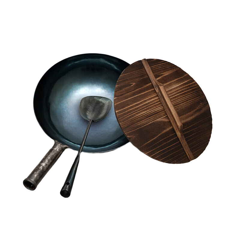 閻鐵匠章丘炒鍋鐵鍋炒菜鍋圓底家用無涂層老式 氮化黑鍋錘印款34cm
