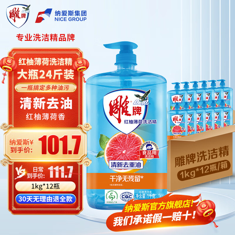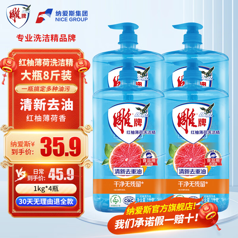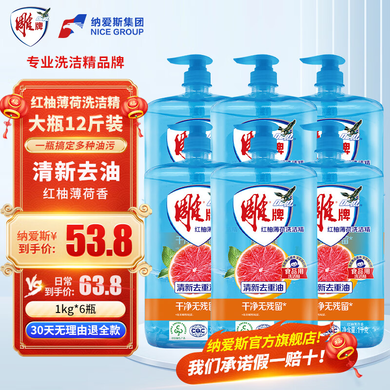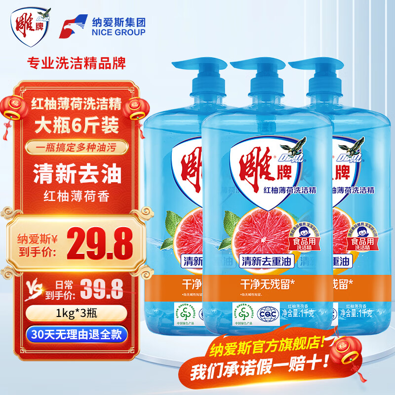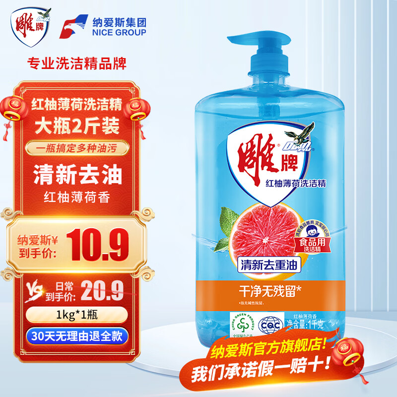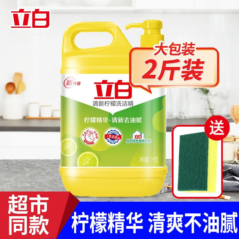 立白柑橘檸檬雙重精華洗潔精1kg去油A類食品用洗滌靈洗滌劑洗潔劑