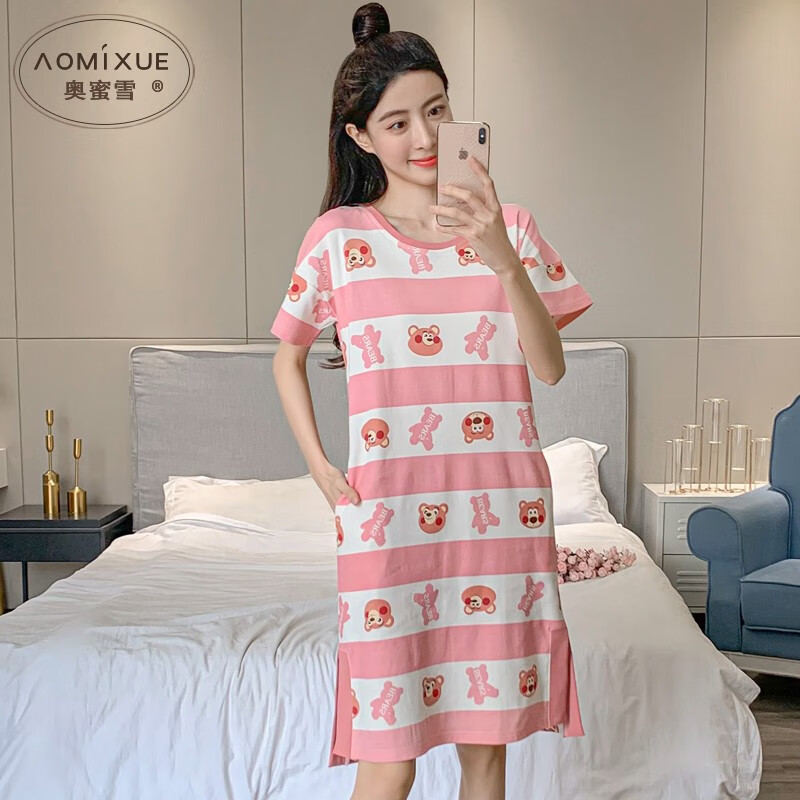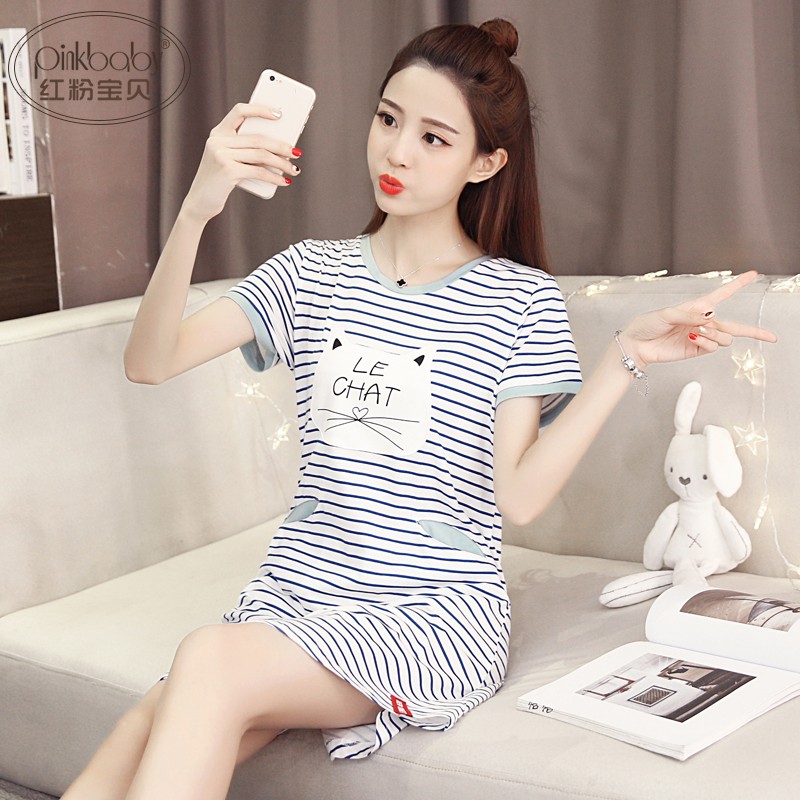 JNBYHOME 夏季翻領(lǐng)條紋短袖睡裙:舒適與時(shí)尚的完美融合