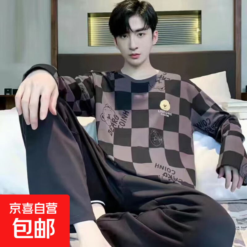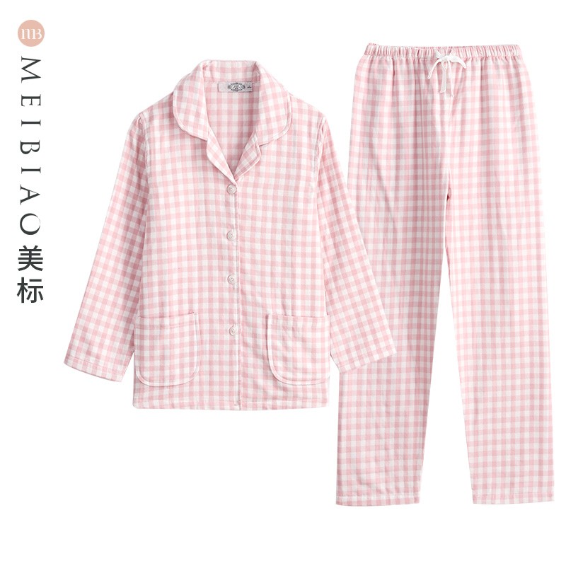 無印格子情侶睡衣春秋季款純棉磨毛男女生磨毛法蘭絨冬家居服全棉