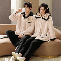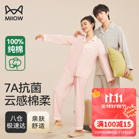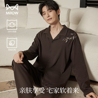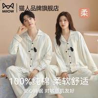?貓人(MiiOW)睡衣男士家居服春秋情侶睡衣100%純棉翻領長袖可外穿 霧藍 XL 京東自營店質量保證售后服務?