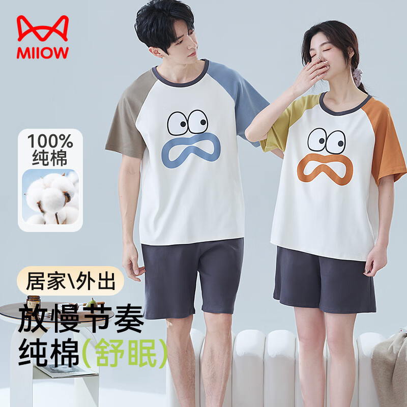 MiiOW貓人集團旗艦店:莫代爾睡衣夏季T恤短褲兩件套