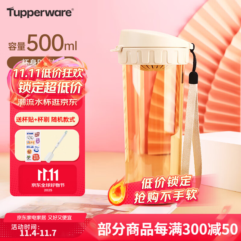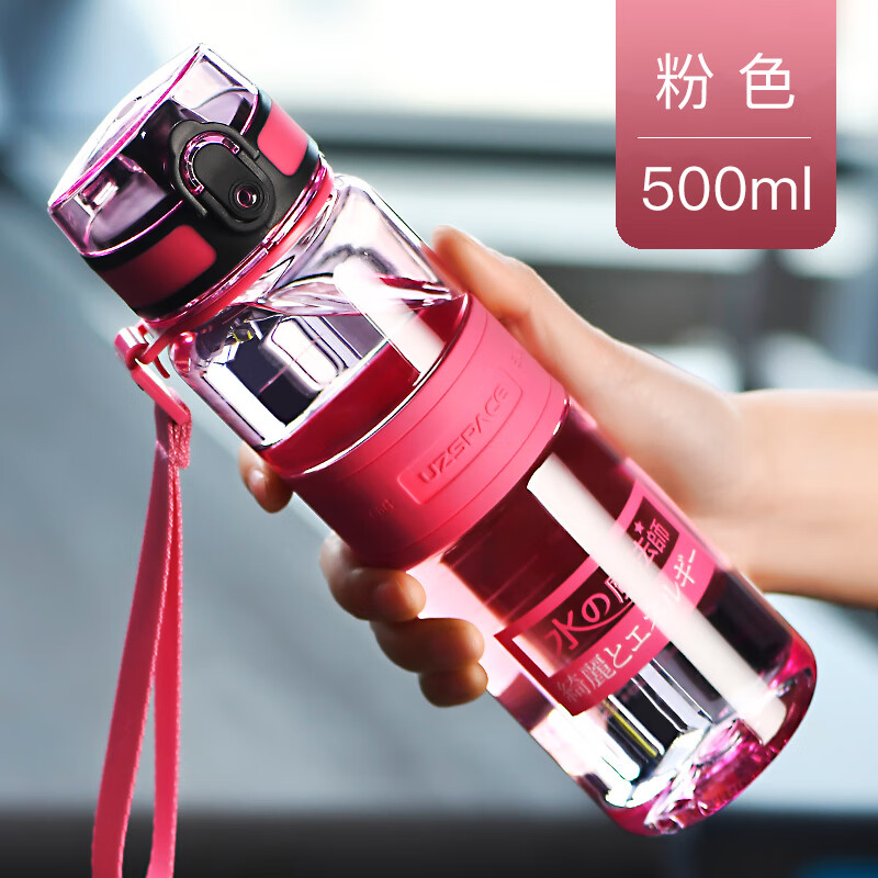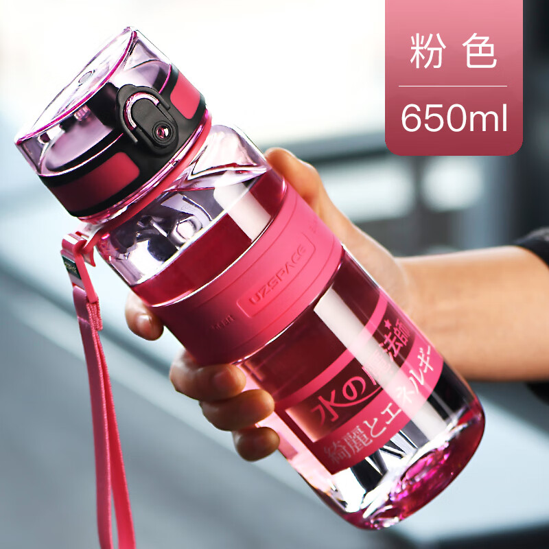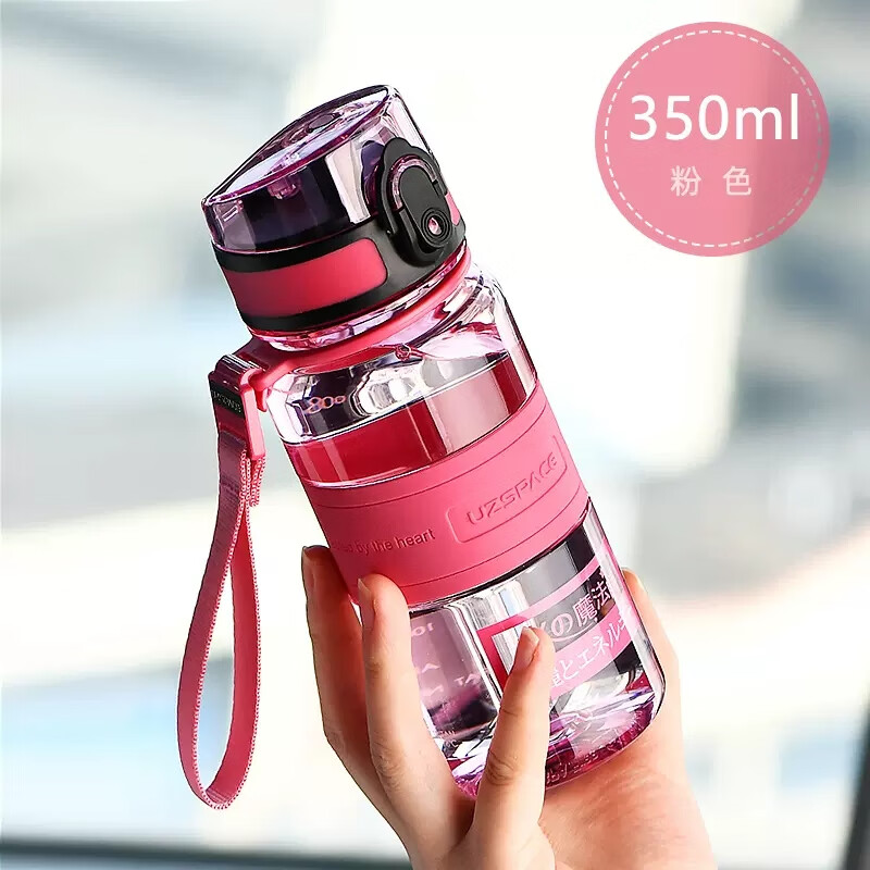 富光塑料杯 隨行系列創(chuàng)意隨手杯子 男女太空杯夏季運動水壺便攜式學生水杯帶蓋茶杯380ML櫻花粉沖沖沖沖呀